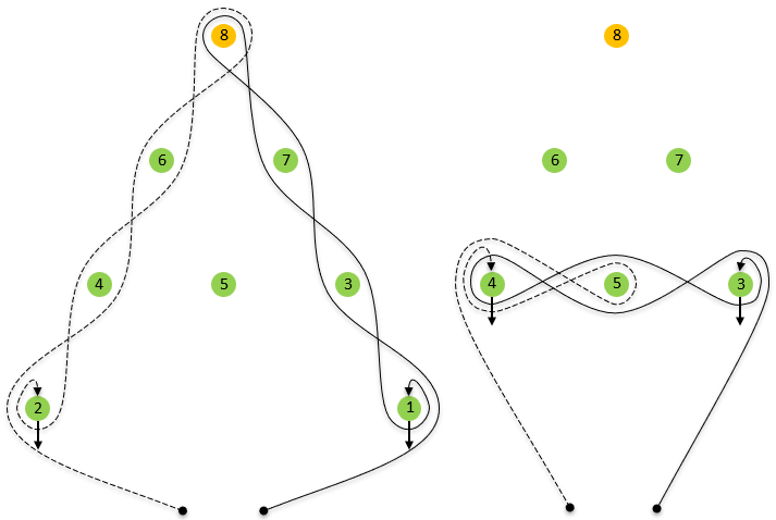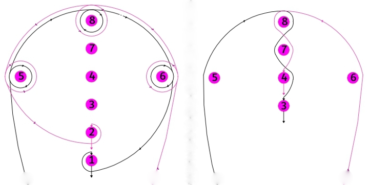 Der Hund muss sich gemäß der Diagramme der einzelnen Aufgabenteile bewegen und darf sich nicht zu weit von der im Diagramm gezeigten Route entfernen. Er darf anhalten, er darf nicht zurückkehren.